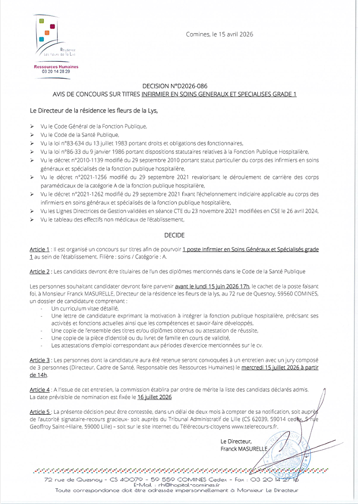 Candidature à envoyer par mail : rh@hopital-comines.fr